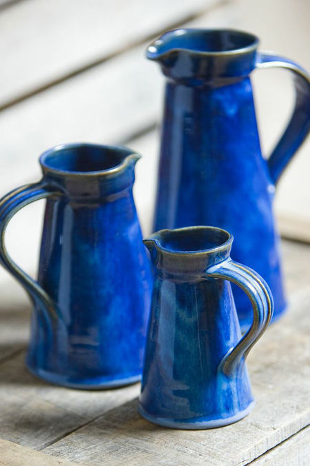 On the principle that form follows function, the sole embellishment to the strong clean lines of his extensive range of richly glazed stoneware, is their distinctive trademark scrolled handles.
