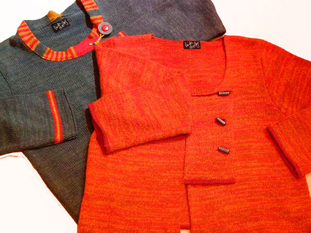 Non pill silk, warm in winter, cool in summer is an ideal yarn for these very wearable, stylish clothes. We can arrange for Linda's designs in customer's size and colour choice, to be knitted to order.