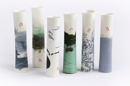 Ali's love of drawing, design and mark making, is expressed in clear fresh colour on thrown, pure chalky white porcelain.