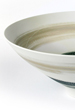 She works on the dry clay with oxides, slips and stains, splashing and incising fine random lines. Sanding between each firing, gives the porcelain a paper like tactile surface to Ali's infinite variety of deft painterly designs applied to uncomplicated, elegant forms.