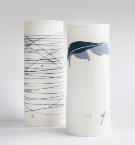 Ali's love of drawing, design and mark making, is expressed in clear fresh colour on thrown, pure chalky white porcelain.